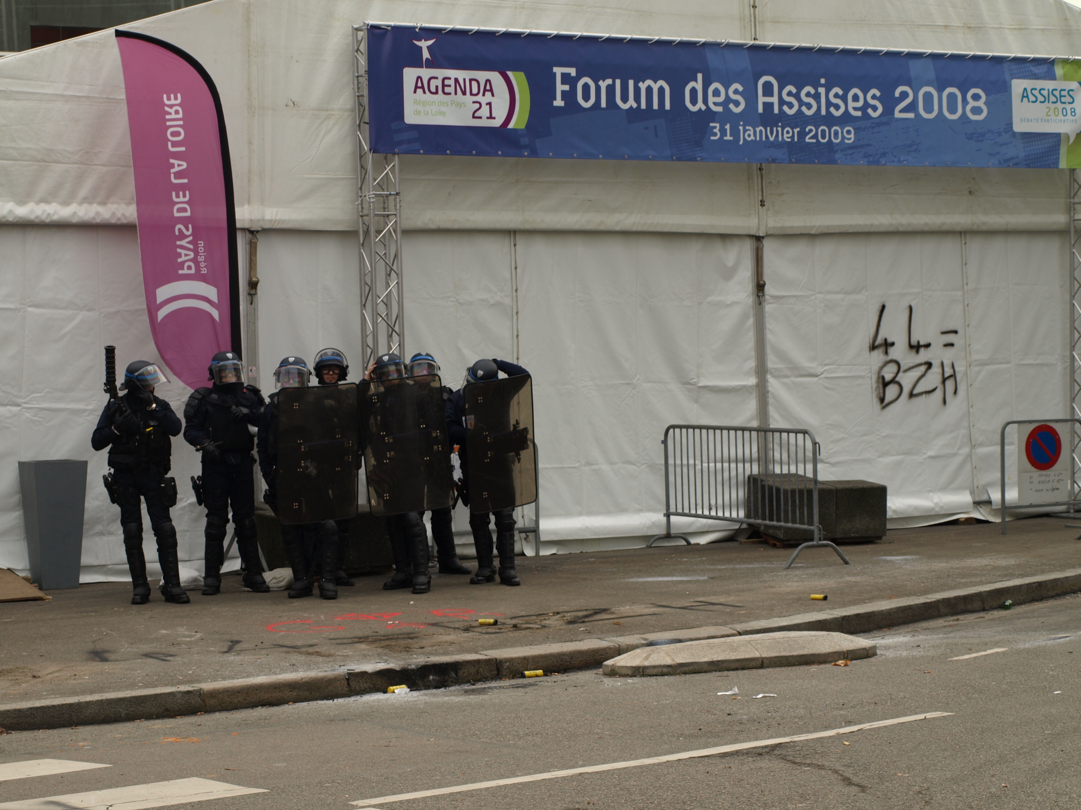 Rappel des faits : dans la nuit du 30 décembre 2009, trois militants nantais sont arrêtés pour avoir barbouillé le palais de région des Pays de la Loire ainsi que plusieurs trains aux couleurs de la région. Le lendemain, trois autres militants sont arrêtés pour les mêmes faits. Certains entres eux vont passer plus de 40h heures en garde à vue ! Ils passent en procès le 12 février 2009 et sont condamnés à 2 mois de prisons avec sursis, 100 heures de TIG chacun, 11.500 € d’indemnisation pour la SNCF et 20.900 € pour les Pays de la Loire. Devant cette peine complètement disproportionnée ils font appel.