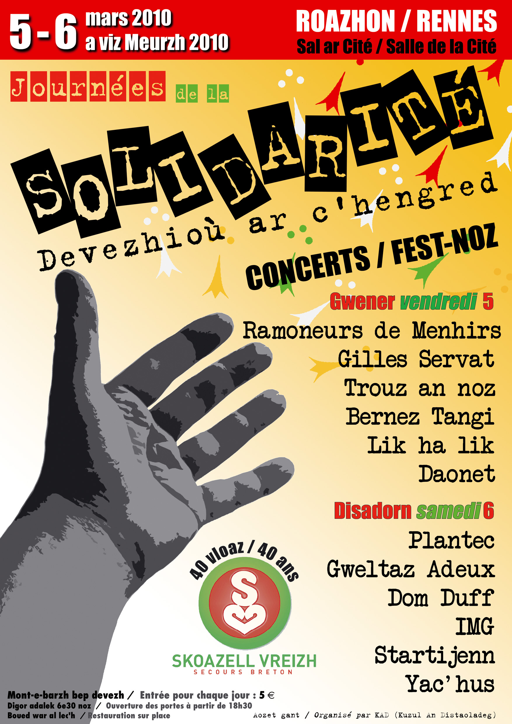 La fresque humaine réalisée le 27 février à Nantes et représentant le slogan « 44=BZH », a été un véritable succès. Y ont participé une multitude de personnes d’opinions et d’origines diverses. Ceci constitue pour nous un des éléments encourageant dans la construction de l’unité territoriale de la Bretagne.