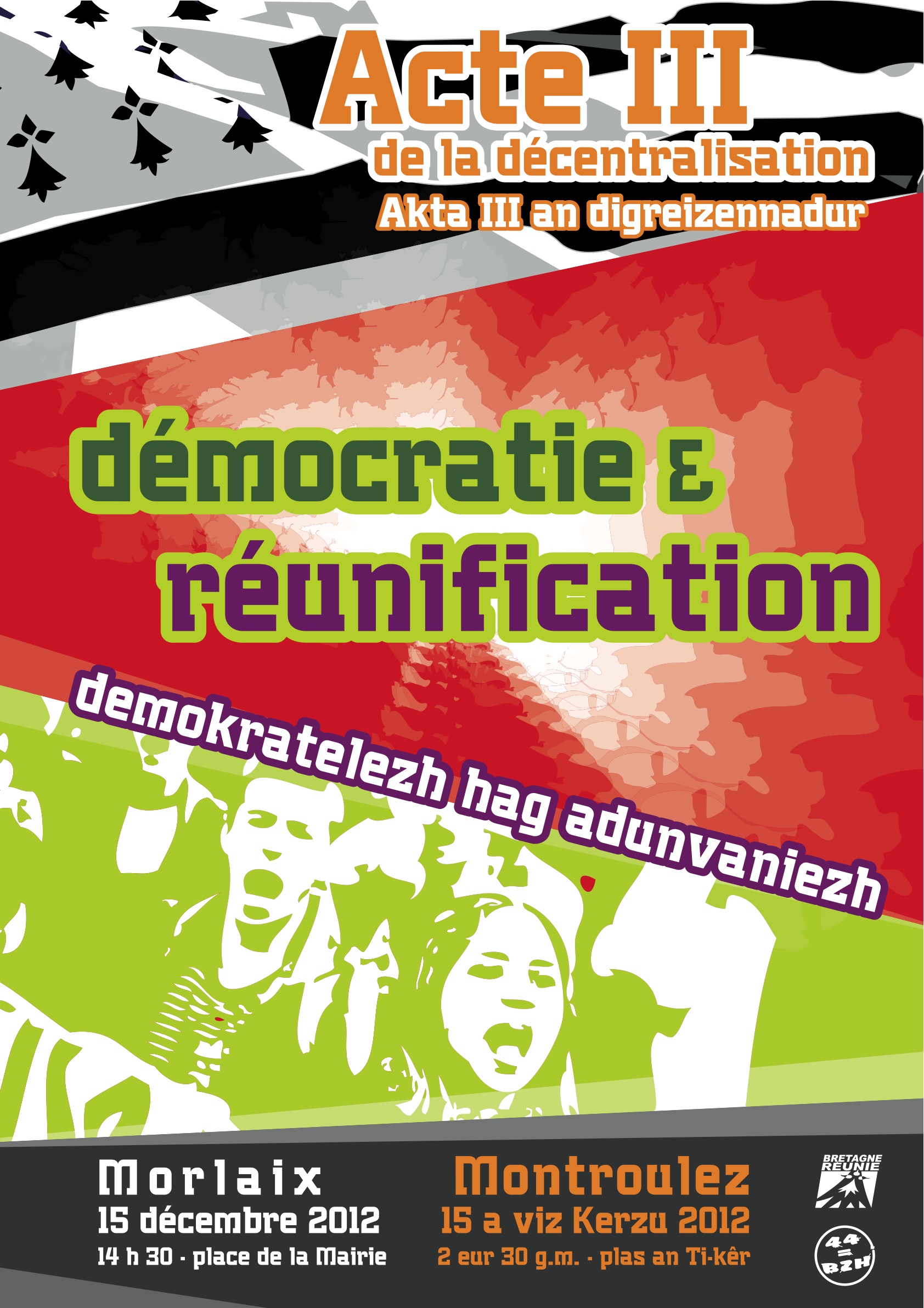 06/12/2012Emglev Bro Gwened organise un car pour se rendre à la manifestation «Démocratie & Réunification» qui aura lieu le samedi 15 décembre à Morlaix.