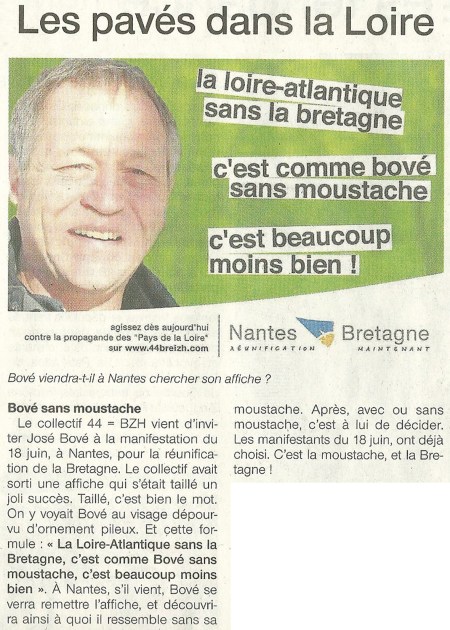 L’action de barbouillage du palais de région, la solidarité et la diversité des organisations présentes devant celui-ci, faisant face aux gardes mobiles, témoignent d’une réelle frustration face à un dossier qu’aucun responsable politique semble ne vouloir réellement régler. Ceux-ci, à commencer, par le nouveau président du CG 44 (Philippe Grosvalet) doivent en prendre la mesure et se positionner pour une solution réelle de la partition de la Bretagne.